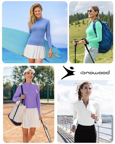 isnowood Women's 1/4 Zip Long Sleeve Rash Guard, UPF 50+ UV Sun Protection Shirts, Quick Dry Workout Hiking Athletic Tops 6