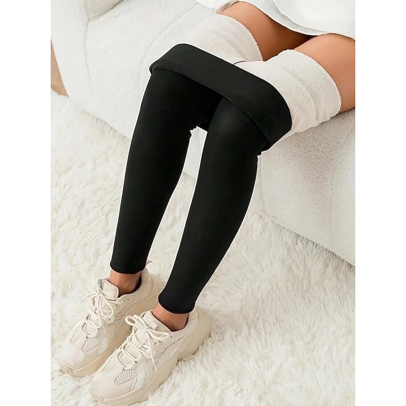 HOT ! Women's Fleece Pants Leggings Fashion Streetwear Basic Full Length High Waist Solid Color High Cut Comfy Soft Comfortable Stretchy Home Daily Wine Navy Black Gray Summer Spring Fall Winter Regular Fit