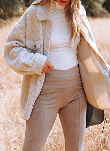 Nirovien Womens Oversized Fleece Jakcets Button Down Sherpa Shacket Fuzzy Coats Casual Warm Teddy Outwear with Pockets 5