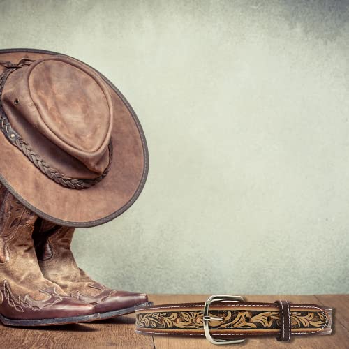 Needzo Decorative Carved Brown Leather Belt, Western Cowboy Apparel for Men and Women, Utility Tool Belts, Country Themed Wild West Gifts, Made in Mexico, Size 36 4