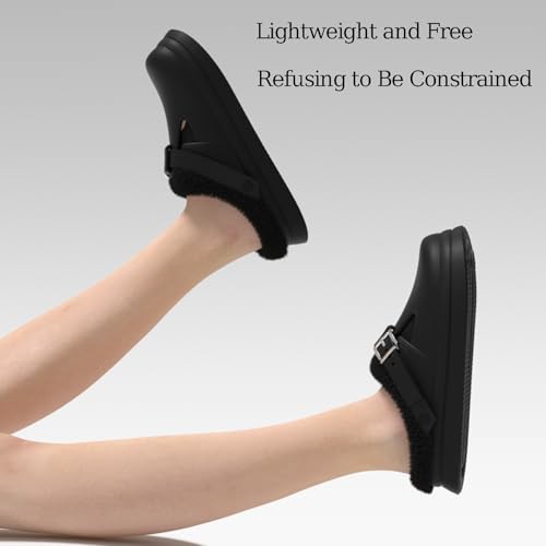 ChayChax Women’s Fur Lined Clogs Waterproof Warm Fuzzy Slippers for Indoor Outdoor with Adjustable Buckle 7