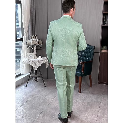 Mens Suit Jacquard Groom Tuxedos Shawl Lapel Suits Slim Fit 2 Pieces Two Buttons Jacket 3