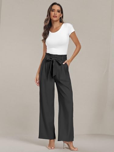 HOT ! LILLUSORY Wide Leg Dress Pants Women's Paperbag High Waisted Business Casual Trousers with Removable Belt