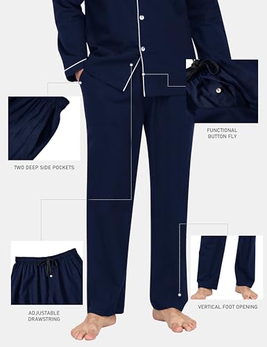 MoFiz Men's Cotton Pajamas Sets Sleepwear Long Sleeve Button Down Loungewear with Pants Soft Pjs Lounge Set with Pockets 4