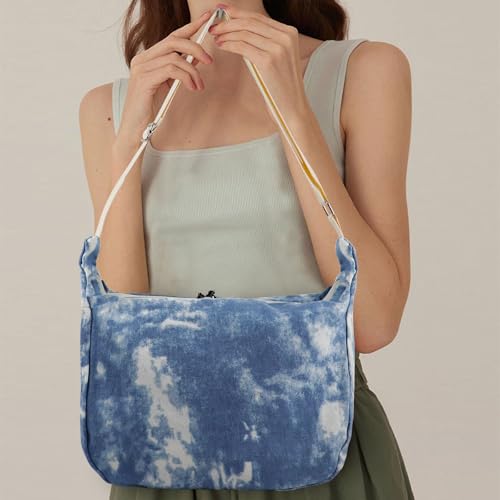 HOT ! Shoulder Bag for Women, Crossbody Bag with Zipper and Adjustable Shoulder Strap, Canvas Crescent Bag Tie-dye Style