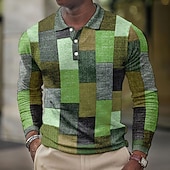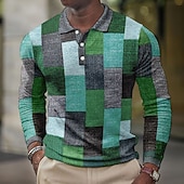 More information about Men's Plaid Waffle Polo Shirts Golf Shirt Long Sleeve Polo Shirts Collared Shirts Vintage Casual Vacation Wear Formal Wear Festival Wear Buttons 3D Print Blue-Green Yellow Blue