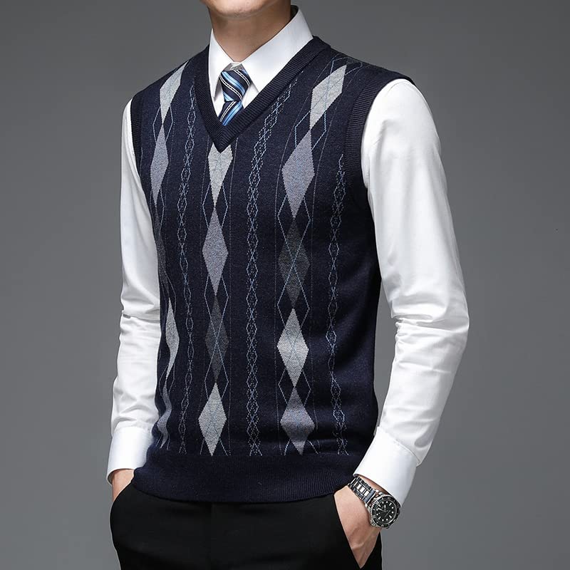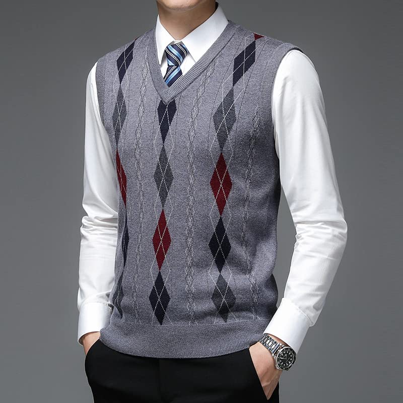 Men Argyle Pullover Sweater V Neck Knit Vest Men Diamond Trendy 6% Wool Sleeveless Clothing 1