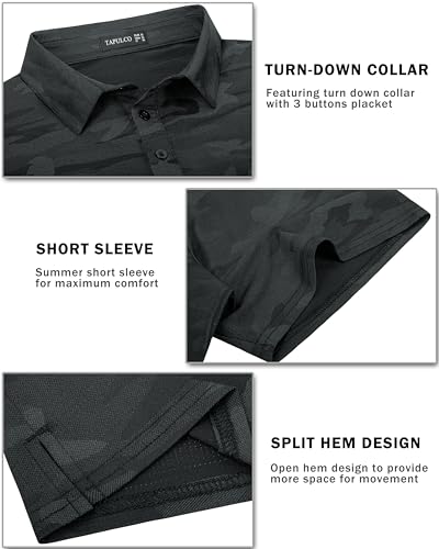 HOT ! TAPULCO Mens Quick Dry Polo Shirts Camouflage Pattern Performance Athletic Lightweight Breathable Casual Golf Tshirts