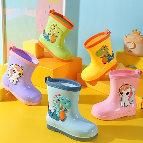 Mnplciea Rain Boots for Kids Girls & Boys Non-Slip Toddler Waterproof Boots Kids Outdoors Rubber Boots for All Seasons 4