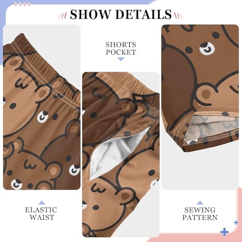 Boys' Pants Cute Bear Brown Long Bottoms Jogger Pants Elastic Waist Trousers with Pockets S-XL 6