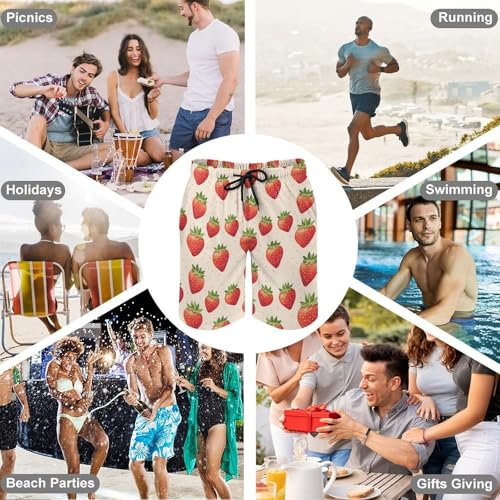 • Applicable Occasions: Perfect for both leisure and athletic activities, these Bright Strawberry Print swim shorts are suitable for home wear, swimming, beach vacations, running, and more, offering versatility in mens swimsuit options