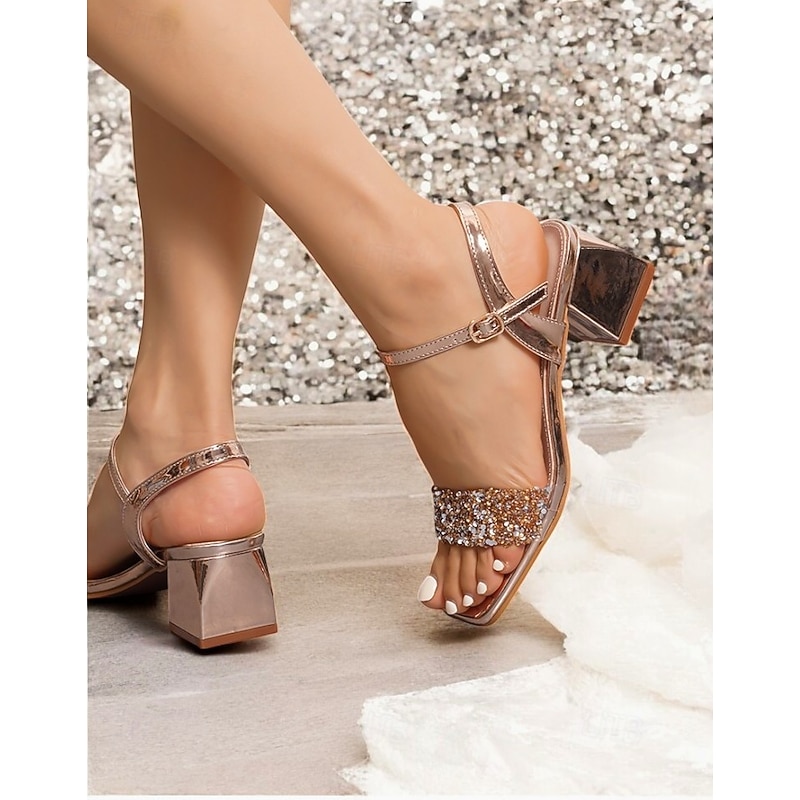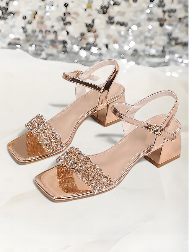 More information about Gold Rhinestone Block Heel Sandals for Women – Elegant Wedding & Evening Shoes