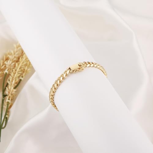 More information about HZMAN 5.5mm Cuban Chain Bracelet for Women - 7.0 Inch Solid Brass Gold Plated Jewelry