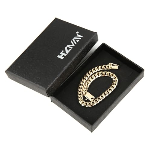 HOT ! HZMAN 5.5mm Cuban Chain Bracelet for Women - 7.0 Inch Solid Brass Gold Plated Jewelry