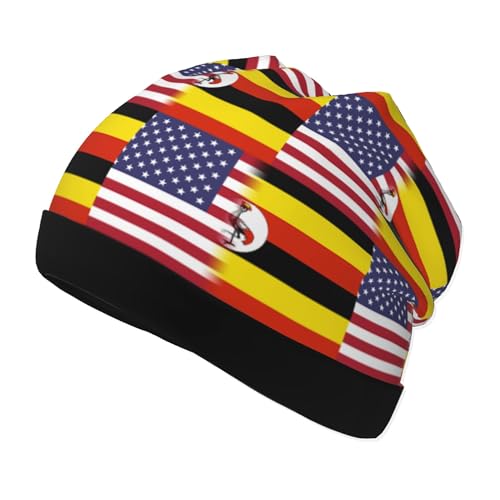 American Flag and Uganda Flag Kids Leisure Elastic Knitted Hat Junior Large Size Knit Cap Child Beanie Black 1