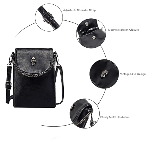 WITERY Small Crossbody Cell Phone Purse Gothic Leather Bag Shoulder Travel Purse 1