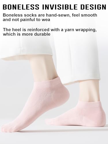 • BONELESS INVISIBLE DESIGN: Boneless ankle socks for women are hand-sewn, feel smooth and not painful to wear,The heel is reinforced with a yarn wrapping, which is more durable