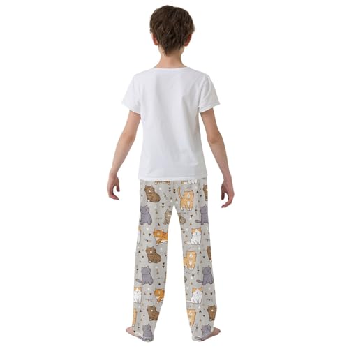 HOT ! Boys' Pants Cartoon Orange Cat Long Bottoms Jogger Pants Elastic Waist Trousers with Pockets S-XL