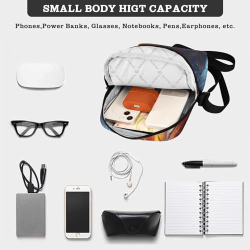 Crossbody Bag Ice Blue Fire Flame Tiger Animal Messenger Bag for Women Men Purse Shoulder Bag Satchel Bag with Adjustable Strap 214B6038 7