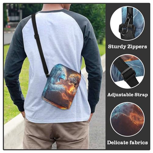 Crossbody Bag Ice Blue Fire Flame Tiger Animal Messenger Bag for Women Men Purse Shoulder Bag Satchel Bag with Adjustable Strap 214B6038 6