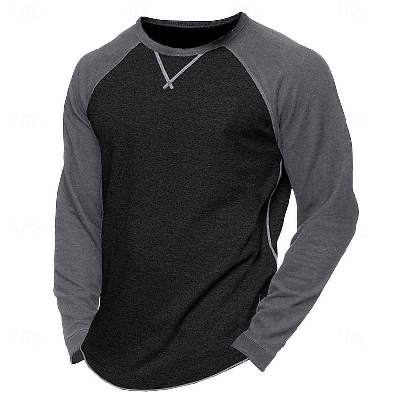 Men's 60% Cotton Raglan Sleeve Sweatshirt Tee Top Long Sleeve Shirt Solid Color Crew Neck Outdoor Street Long Sleeve Color Block Clothing Apparel Daily Casual Street Style 25