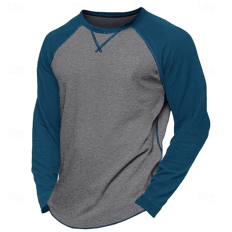 Men's 60% Cotton Raglan Sleeve Sweatshirt Tee Top Long Sleeve Shirt Solid Color Crew Neck Outdoor Street Long Sleeve Color Block Clothing Apparel Daily Casual Street Style 1