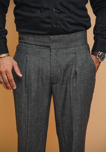 HOT ! Men's Vintage Tweed Dress Pants Slim Fit Flat Front Wool Blend Trousers for Men