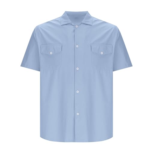 HOT ! Mens Short Sleeve Button Down Shirt Casual Dress Shirts with Two Pocket Lightweight Summer T-Shirt Vacation Beach Tops