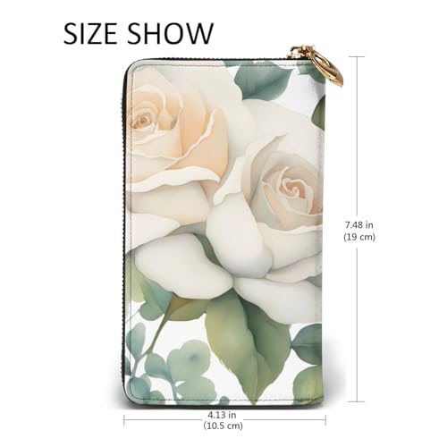 White Watercolor Floral Rose Prints Leather Long Clutch Wallet for Fashionable Girls and Women - Durable, Stylish, and Functional, Black, One Size 1