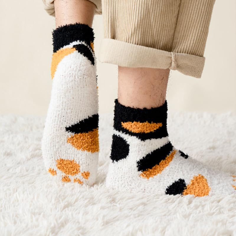 1 Pair Cozy Coral Fleece Cat Claw Calf Socks For Women, Thick heated Winter Home Socks With Striped Pattern