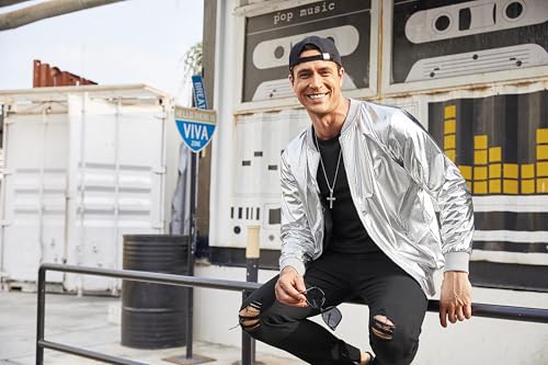 COOFANDY Men's Metallic Jacket 70s Disco Party Varsity Jacket Zip-up Baseball Bomber 6