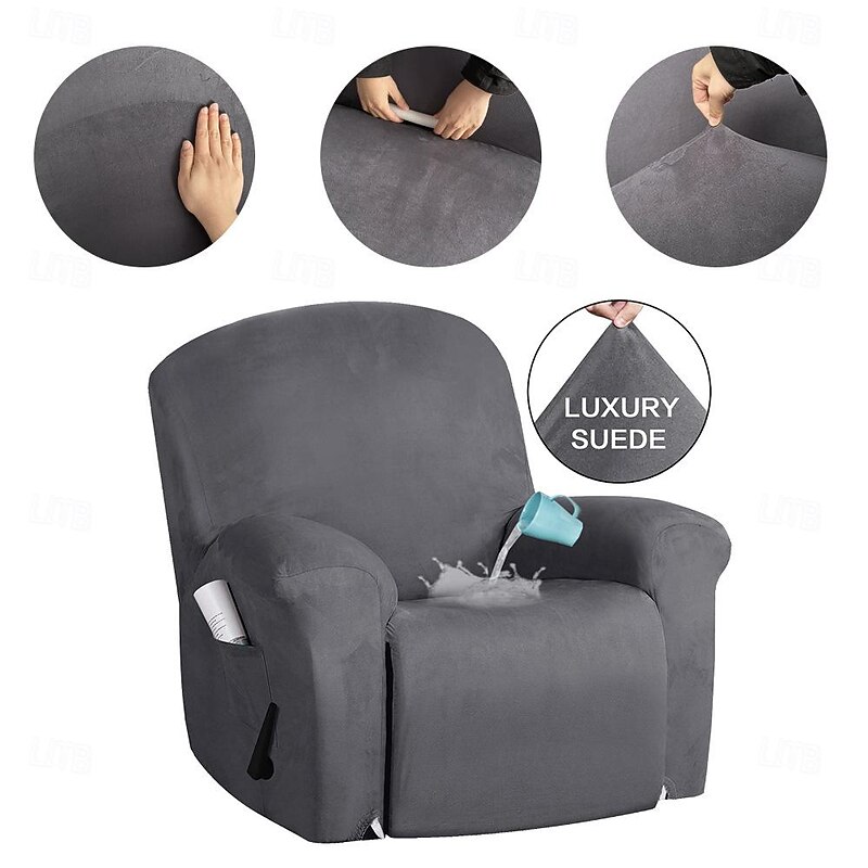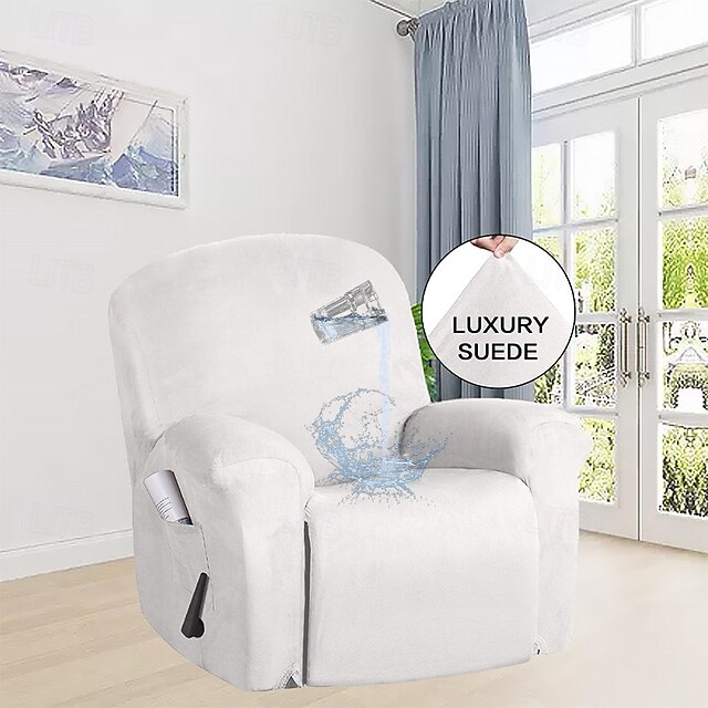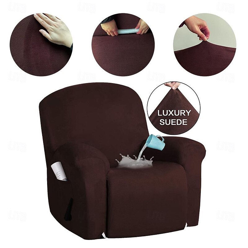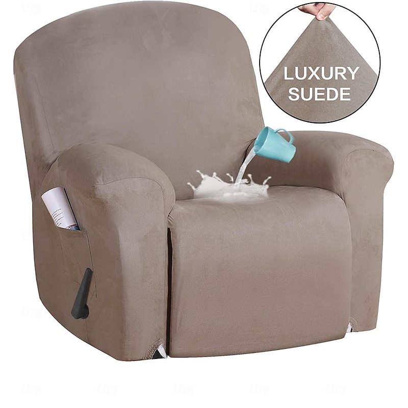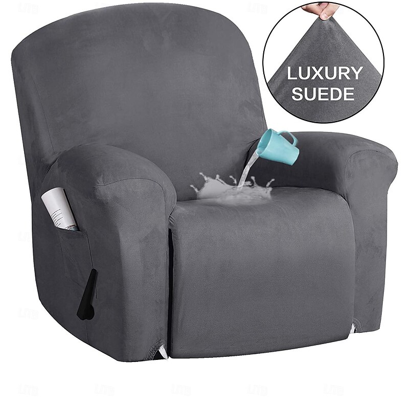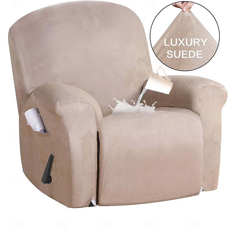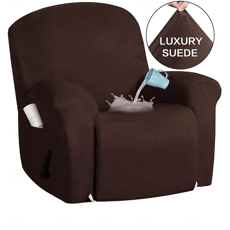 Solid color all-wrap waterproof suede recliner cover Simple protective cover Super smooth Rocking chair cover recliner cover 1