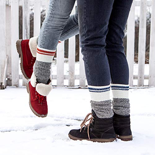 Fabric type: supreme: CheshKit women socks are made of 70% Acrylic, 8% Wool, 20% Polyamide, 2% Spandex blend.Care instructions: EASY-CARE: Delicate machine wash, permanent press: initial water temperature should not exceed 40C/105F. Special instructions: Drip dry. DO NOT: Bleach, Iron, Dry clean.Origin: WARM AND COZY: These great socks will warm your legs and soul in cold weather. They are made with love, as if your grandmother knitted them. In CheshKit Cabin socks, your legs will be warm and soft, as if a soft cat warms your legs. You will enjoy wearing them at home or in your favorite shoes. There's nothing like looking down and seeing them peeking out from your boots, knowing you that your feet are safe and sound.Fur description: MULTI-FUNCTION : CheshKit women socks are suitable for different situation, you can wear them as cabin socks, hiking socks, thermal socks, heavy socks, warm socks, winter socks, fuzzy socks, outdoor socks, sport socks, indoor socks, home socks, knit socks, crew socks, rag socks, heavy-duty socks, boot socks. And how pleasant it is to sit on a cold winter evening by the sparkling fireplace with a cup of warm cocoa in CheshKit Cabin socks.ECO-FRIENDLY: Materials meet the STANDARD 100 by OEKO-TEX. Absence of banned colorants, formaldehyde, pentachlorophenol, cadmium, nickel, and other harmful components.SIZE: These Women socks come is a standard US Size 5 - 8,5, so everyone can enjoy these colorful fashion socks.HOME COMFORT: Can be easily used as warm, soft and comfortable slipper socks that keep your feet warm as you do work around your house, yard or garden.ONLY IN OUR CABIN SOCKS: Special bandage was designed to prevent the heel from sliding down in CheskKit Cabin socks. It gently holds the sock on the lower leg without squeezing it and prevents it from sliding down.MADE WITH PASSION in Ukraine, Europe