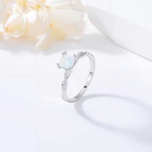 925 Sterling Silver 1 CT Princess Cut Opal Ring for Women Dainty Opal Engagement Wedding Promise Ring Anniversary Birthday Jewelry Gift for Mother Wife Friend 6
