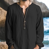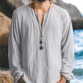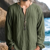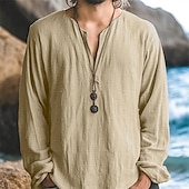 More information about Men's Shirt Linen Shirt Summer Shirt Beach Shirt Solid Color Vacation Casual Black White Green Khaki Long Sleeve V Neck All Seasons Clothing Apparel Basic