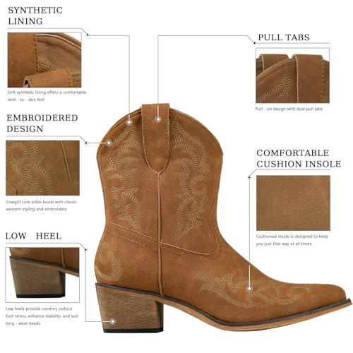 More information about J's.o.l.e Women's Embroidery Snip Toe Western Cowboy Cowgirl Boots Low Heel Ankle Short