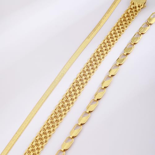 • Gold Bracelets for Women:This dainty gold bracelets set collection includes melon chain,herringbone and mesh link chain bracelet;perfect for layering or wearing solo,our gold bracelets add a touch of sophistication to any outfit
