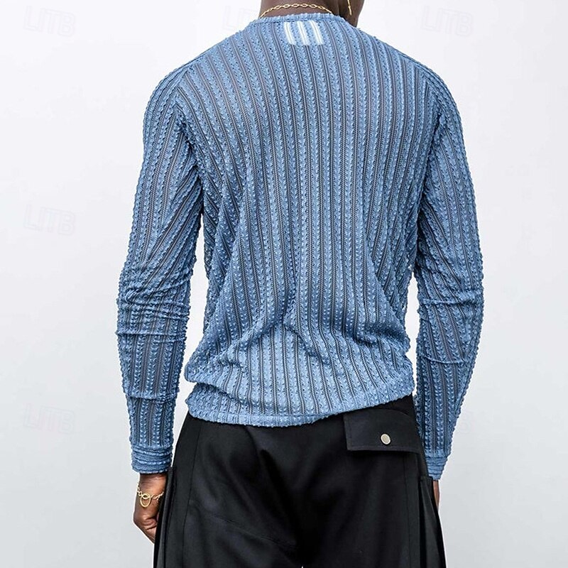 Highlights - Perfect for spring and summer - Made with high-quality polyester fabric - Stylish long sleeve design for men - Basic style that is versatile for any occasion - Ideal for vacation wear - Comfortable crew neck neckline