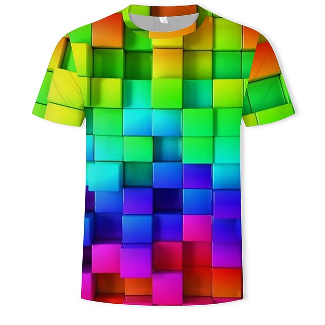 More information about Men's Graphic Geometric 3D T Shirt Short Sleeve T shirt Round Neck Shirt Casual Daily Purple Green Rainbow Summer Clothing Apparel Asian Size S M L XL XXL 3XL