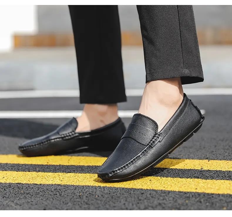 HOT ! Loafers for Men Round Toe Nubuck Leather Penny Driving Loafers Anti-Slip Slip Resistant Flexible Outdoor Casual Slip-on