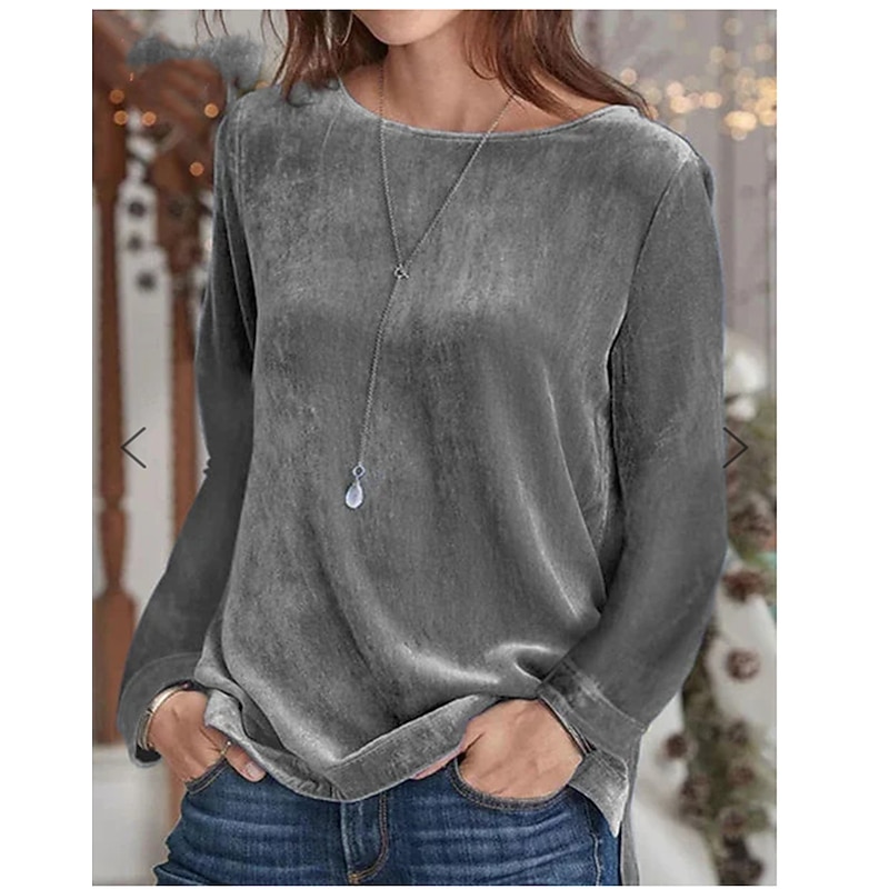 This elegant women's T-shirt is crafted from luxurious velvet fabric, offering a soft and smooth texture. The velvet provides a rich, plush feel that is gentle against the skin, ensuring day-long comfort.