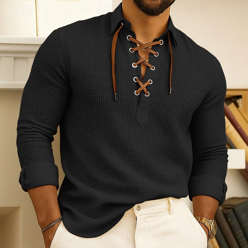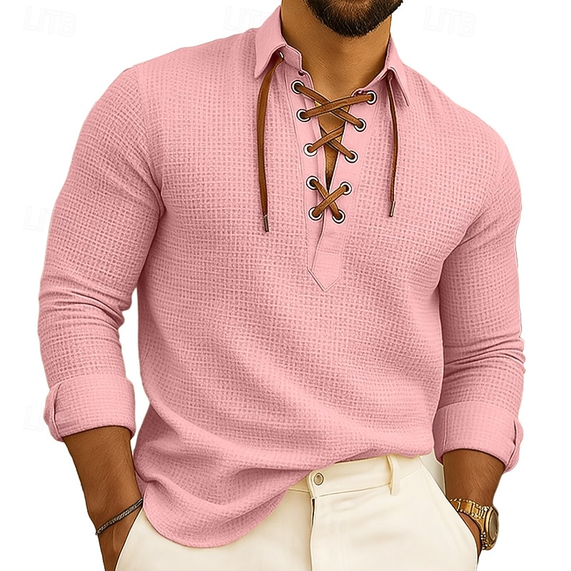 More information about Men's Shirt Summer Shirt Casual Shirt Button Up Shirt Waffle Knit Shirt Black Pink Blue Green Long Sleeve Plain Lapel Vacation Casual Drawstring Clothing Apparel Fashion Casual Comfortable