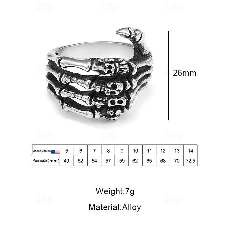 $7.99 - Men's Gothic Skeleton Hand Ring – Unique Alloy Design with Skull Details, Perfect for Halloween, Costume Parties and Gothic Fashion Enthusiasts 2025. Shop for cheap Halloween Accessories online? Buy at lightinthebox.com on sale today!