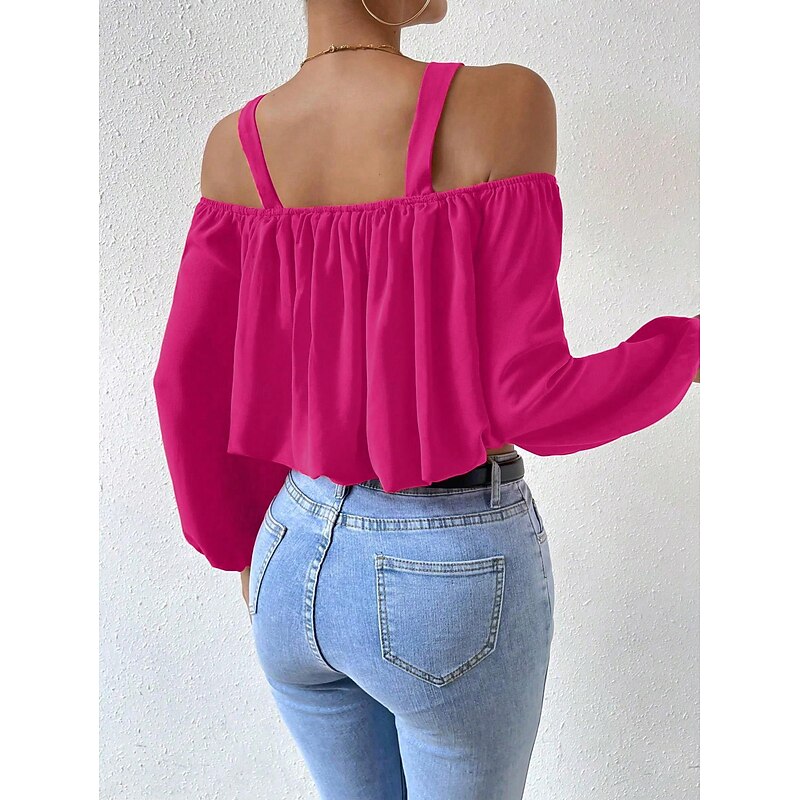 Shirt Blouse Women's Pink Plain Cold Shoulder Street Daily Fashion Off Shoulder Regular Fit S