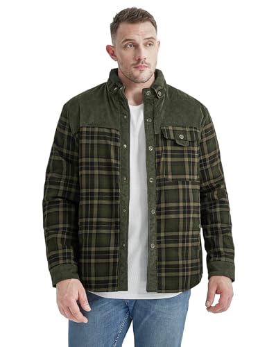 • Mens Flannel Jacket Unique Design: The shell fabric is classic vintage flannel plaid and superior corduroy patchwork, the overall color is vibrant, the lining is warm and soft sherpa fleece, the men's winter jacket is a western cut style, perfect for fall and winter indoor as well as outdoor activities