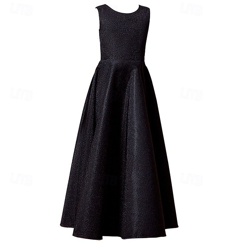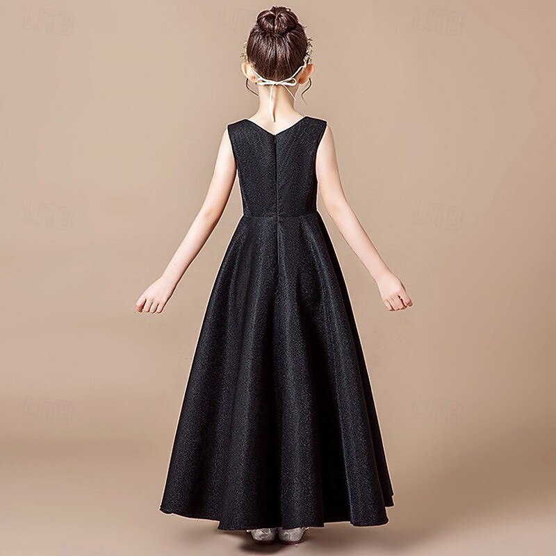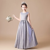 More information about Flower Girl Dress Kid's Girls' Princess Dress Performance Wedding Party Elegant Beautiful Solid Color Sleeveless Crew Neck Grey Black 4 years+