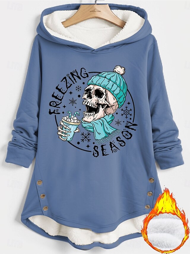 This Women's Pullover Hoodie Sweatshirt Graphic Skull Letter cozy Casual Long Sleeve Hooded Long Tops Street Dailywear Casual Buttons Print Black Pink Blue Gray Fall Winter combines elegant design with practical functionality. Every detail has been carefully considered to ensure you get the best possible experience. The top-grade construction means this product will serve you well for years to come.