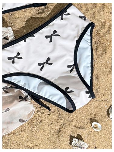 SHENHE Girl's 3 Piece Swimsuit Bow Print Crop Top Bathing Suit with Mesh Cover Up Skirt 5