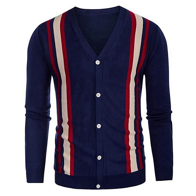 More information about Men's Cardigan Sweater Knit Sweater Ribbed Knit Cropped Button Up Color Block V Neck Warm Ups Modern Contemporary Casual Daily Wear Clothing Apparel Fall Winter Dark Navy Brown M L XL
