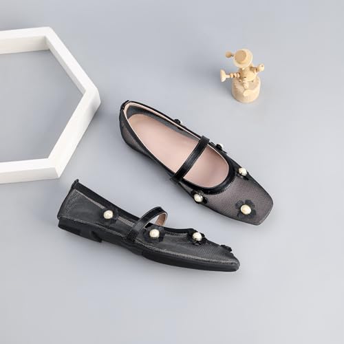 rismart Women Mesh Ballet Flats Strap Casual Office Net Ballerina Shoes 4